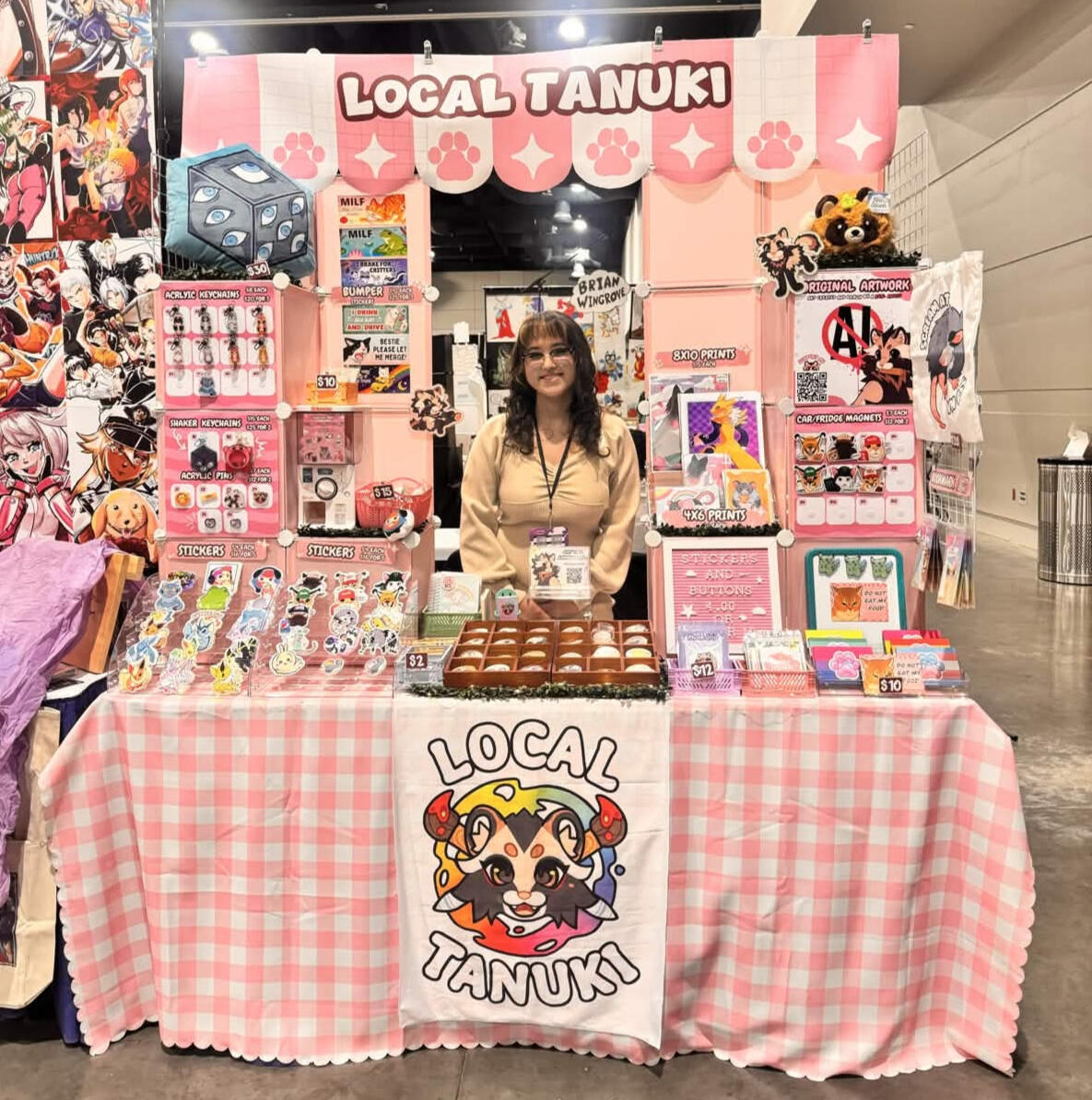 These pictures go from most recent -> oldest. I try to cater my display to the events theme or subject. For example, an anime market will have more anime/nerdy items, while furry conventions have more animals!
